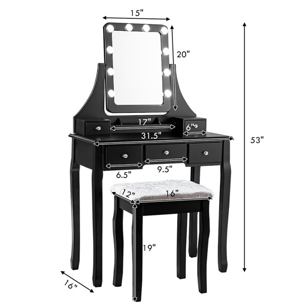 Would not recommend this piece. It is more for a child than an adult as you can't get your legs under the table when sitting on the chair and trying to scoot in to look in the mirror. Also the light around the mirror has a fault of some sort as you have to move the wire sometimes before it will light up.