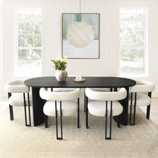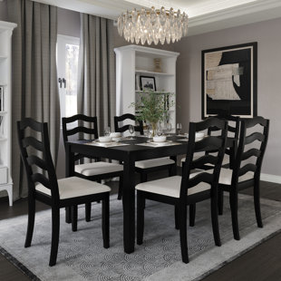 This 9-piece dining set has clean-lined silhouettes and rustic golden brown tones to give your eating area a laid-back, boho vibe. It includes a rectangular table and eight matching side chairs, each piece crafted from solid rubberwood. The purposeful distressing, which includes scoring and rub-throughs, brings out the natural wood grain for an antique-inspired look we love. Plus, the chairs feature a modern twist on a classic ladder back design with a simple box seat that lets you enjoy every family dinner and special occasion you host.