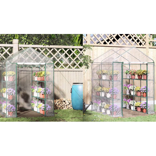 This open “walk-in” portable greenhouse utilizes lightweight, yet sturdy, PVC coverings built over a powder-coated steel frame. The combination of these two elements is an incredibly durable final product that can be moved from location to location, fitting in tight spaces as available. The zipper door allows for easy access and ventilation while it also can be sealed in to maintain the internal climate. Perfect if you want to reduce excessive heat or cold and keep your seedlings safe throughout the seasons. The “three-tiered” hexagonal design adds the shelves and shape that is perfect if you need storage internally and want to fit the greenhouse in specific areas. Start your backyard gardening today with this Outsunny greenhouse.